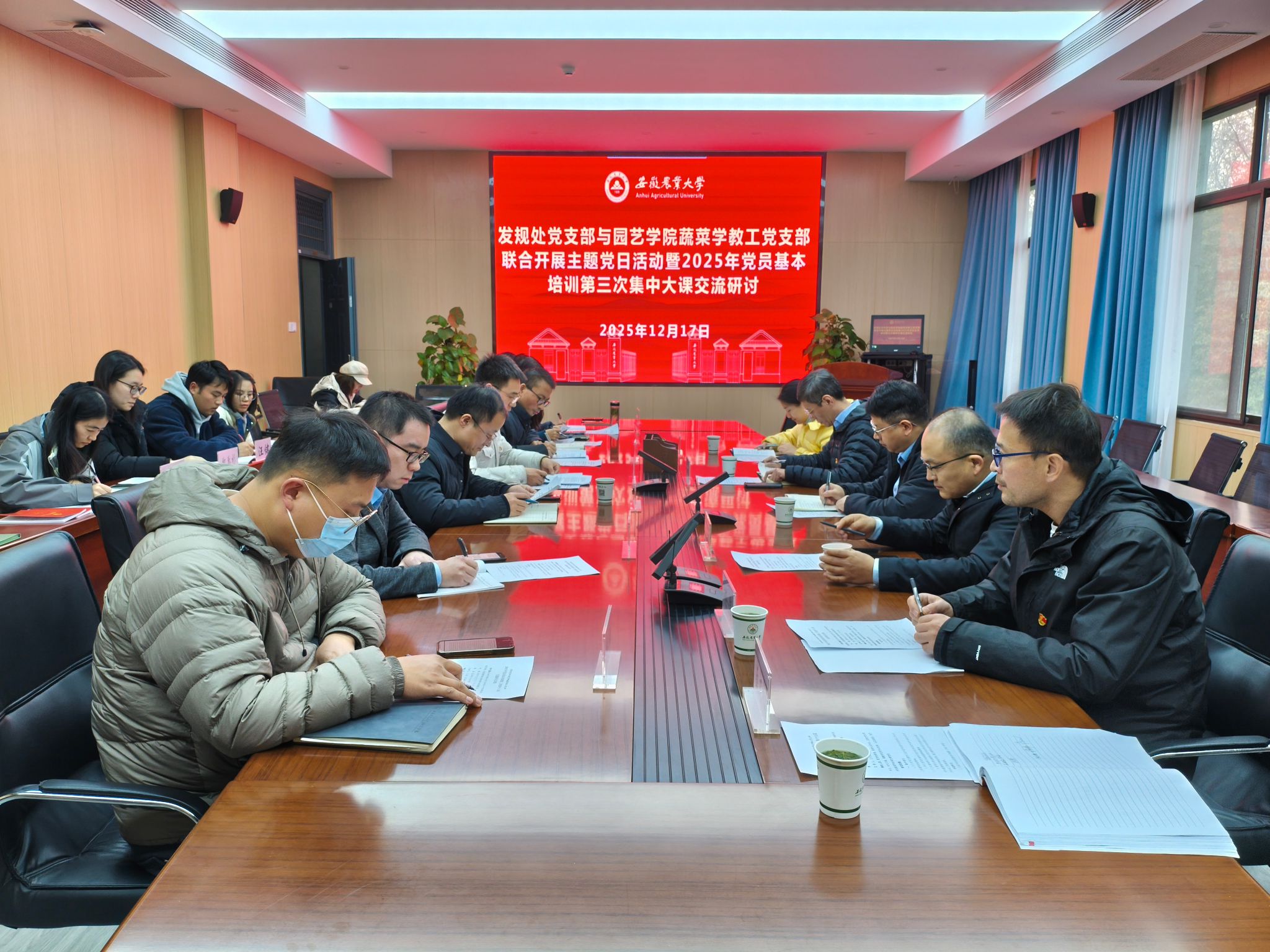 12月17日下午,发规处党支部与园艺学学院蔬菜学教工党支部联合召开2025年党员基本培训第三次集中大课学习研讨会。校党委常委、副校长吴祥为以普通党员身份参加学习研讨。会议由园艺学院党委副书记程玉峰主持。两支部全体党员参会。