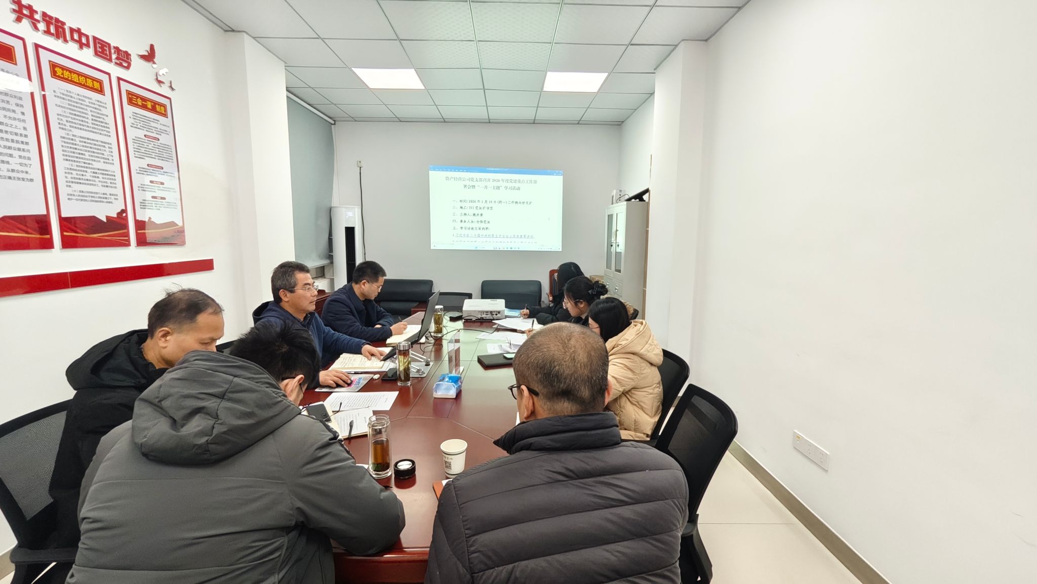 1月19日,资产经营公司党支部召开2026年度党建重点工作部署会暨“一月一主题”学习活动,会议由公司党支部书记姚兴贵主持,全体党员及入党积极分子参加会议。
