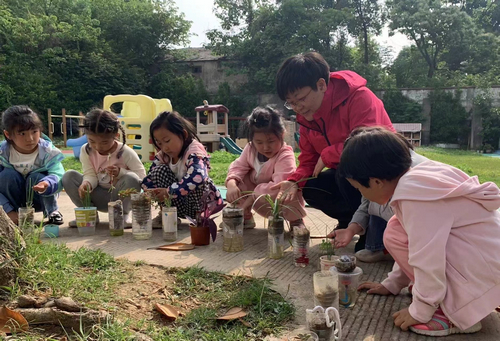 大一班李静老师带着孩子们户外活动时,和孩子们一起蹲下来观察植物的生长变化,解答小脑瓜们千奇百怪的问题。关爱孩子,像照顾小植物一样耐心细致。