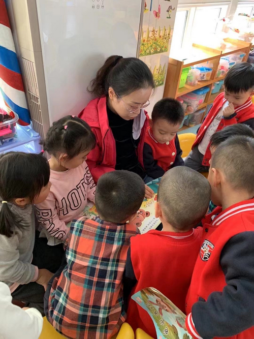 中一班俞倩老师在午饭后为孩子们讲述了一个关于小熊的故事,孩子们围坐在她身边,和老师一起经历书中的奇妙世界~