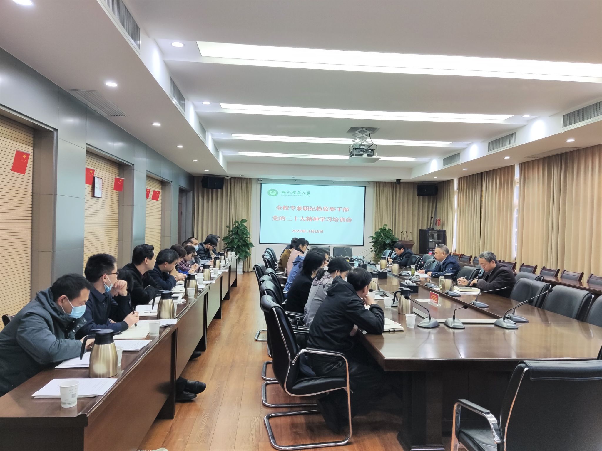 11月16日,校纪委召开全校专兼职纪检监察干部学习培训会。校党委常委、纪委书记、监察专员陈文兵作题为《深学细悟党的二十大精神 抓严抓实正风肃纪》的专题宣讲。校纪委委员、二级纪委书记、二级党组织纪检委员、专职纪检监察干部参加学习培训。