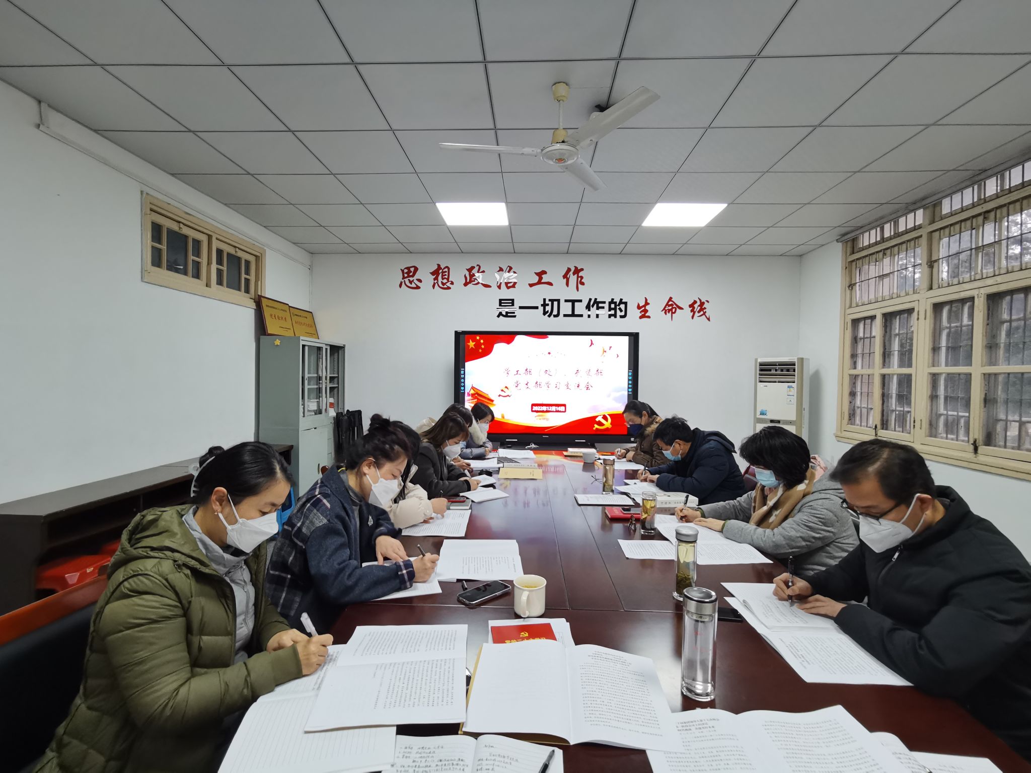 裴树东领学了习近平总书记的文章《继承和发扬党的优良革命传统和作风 弘扬延安精神》以及中共中央政治局12月6日会议精神。姚莉传达了校党委理论学习中心组围绕学习贯彻党的二十大精神、维护校园安全稳定开展专题学习会议精神。支部党员董丹丹围绕《习近平谈治国理政》第四卷学习作了题为《坚持敢于斗争》的微党课,并领学了习近平在二十国集团领导人第十七次峰会第一阶段会议上的讲话精神、习近平致信祝贺国史学会成立30周年贺信、郑栅洁在安徽大学宣讲党的二十大精神时的重要讲话精神等内容,支部党员围绕学习内容进行了交流和研讨。