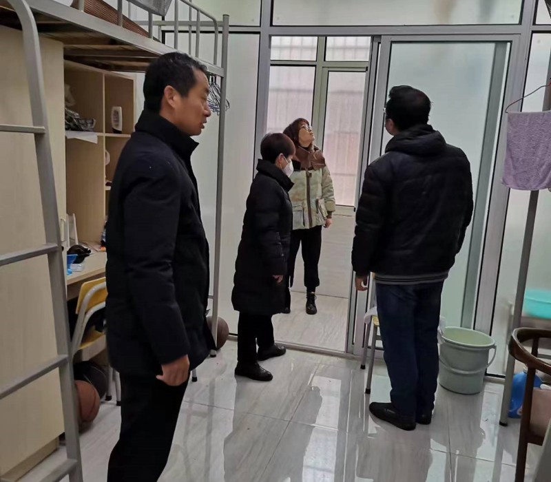在正月,学生公寓洗手间的隔断门安装、学生宿舍老式门锁更换等一项项事关学生生活便利的维修工程便已按下“加速键”,宿管中心支部各党员主动请缨,分别包干各维修项目的运行,他们深入施工现场督促工程进度、把关工程质量。
