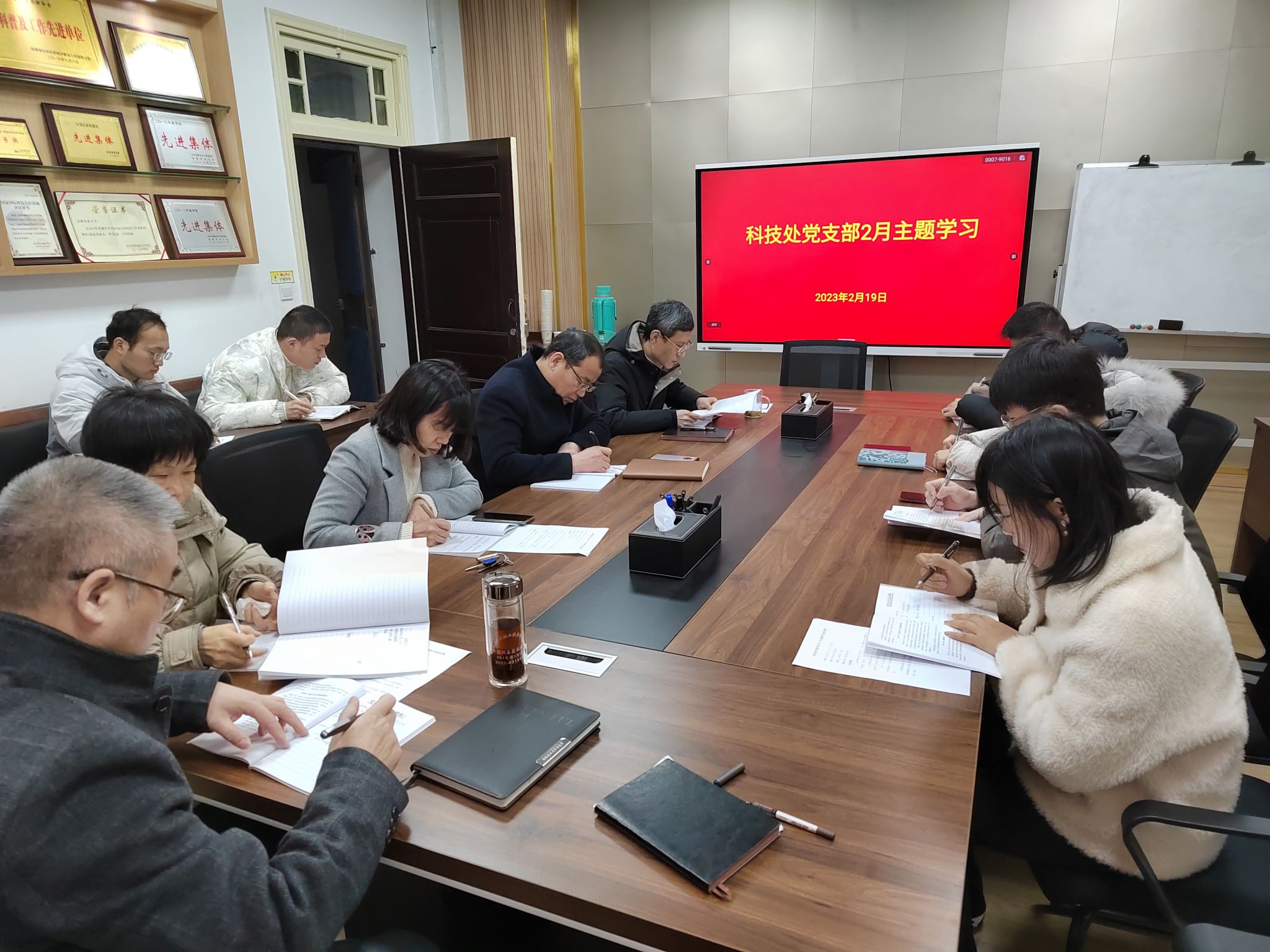 2月13日上午,科技处党支部在勤政楼104室召开集中学习主题会议并对就本年度支部重点工作进行部署与讨论。会议由党支部书记王瑞主持。
