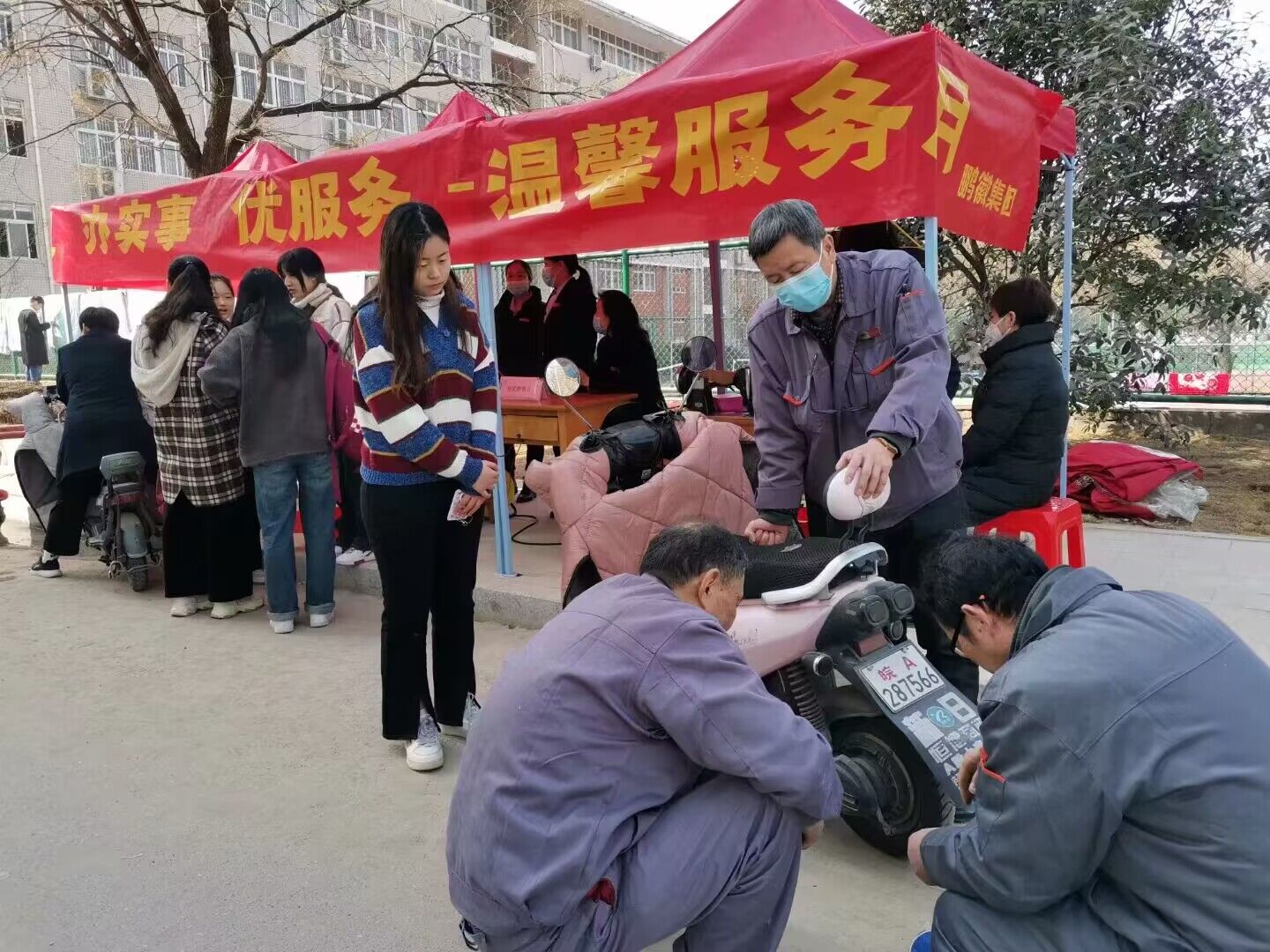 活动中,志愿者小分队深入校园周边、宿舍楼内外开展卫生大扫除、清除小广告;在教学楼、宿舍楼前设立服务点,为同学们缝补熨烫衣服、维修电动车和小电器、清洗眼镜、便民义剪;进行消防、安全等知识趣味竞答,答对有奖活动;设立物业经理接待点,实行“管理面对面,服务零距离”,倾听师生的声音。