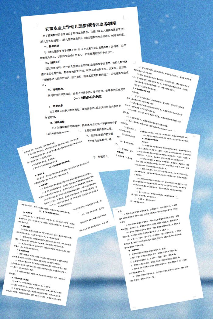 为帮助教师迅速成长,幼儿园依据《幼儿园教师专业标准》重新修订了《安徽农业大学幼儿园教师培训培养制度》,以《幼儿园教育指导纲要》和《3-6岁儿童学习与发展指南》为指导,以师德教育为核心,以教师专业成长为重心,切实提高教师的专业水平。针对教师的不同经验,分别进行了新教师、青年教师和骨干教师的定向培训制度。