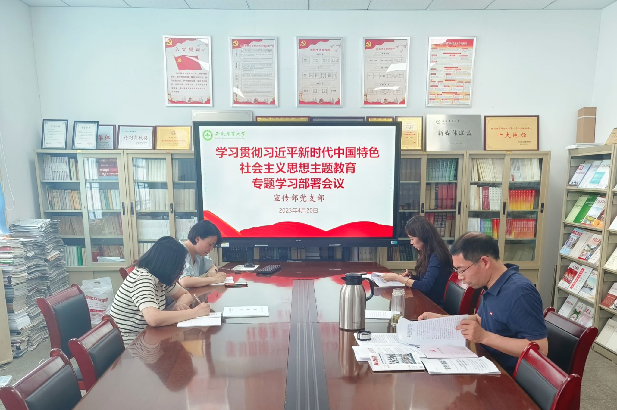 4月20日下午,宣传部党支部召开党员大会,专题学习部署学习贯彻习近平新时代中国特色社会主义思想主题教育。支部负责同志主持会议。支部在职党员参加会议。