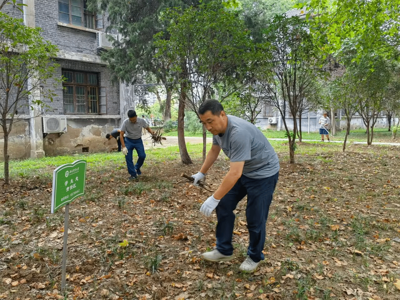会后,支部全体党员赴校园环境卫生责任区开展主题党日活动,将责任区内的杂物砖块、枯枝杂草等清扫干净,净化校园,助力迎新工作。(一审:任琪 二审:葛红)