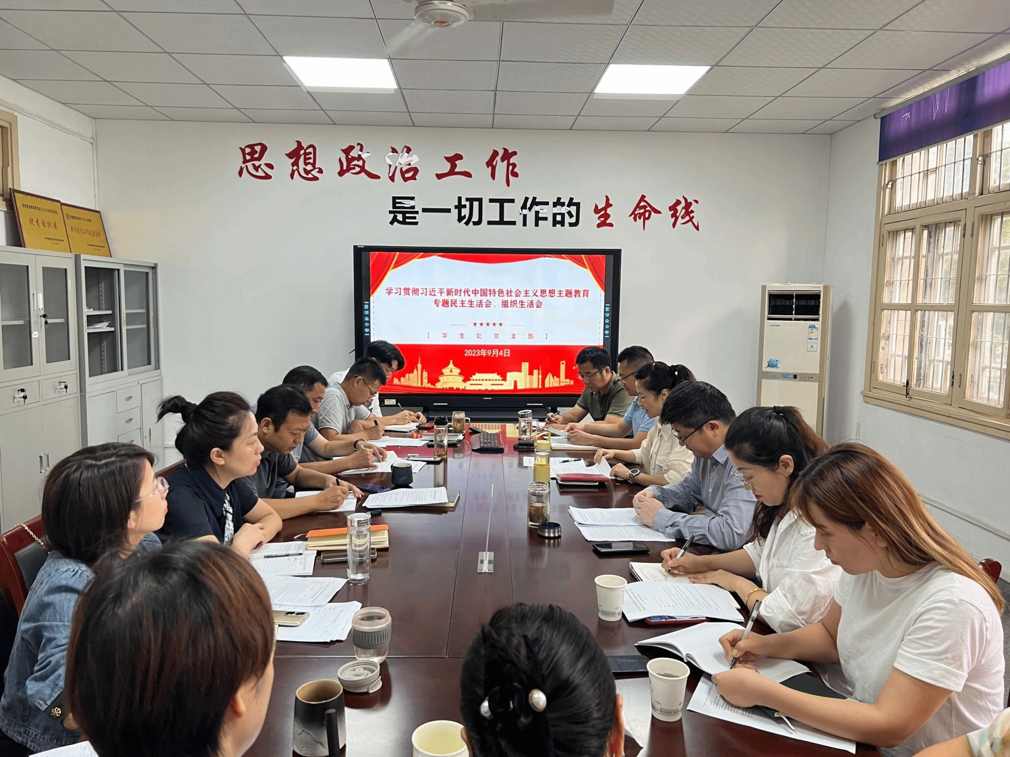 9月4日,学生处召开党员学习贯彻习近平新时代中国特色社会主义思想主题教育专题组织生活会。党委组织部常务副部长韩弥明到会指导,支部全体党员参加会议,会议由党支部书记任琪主持。