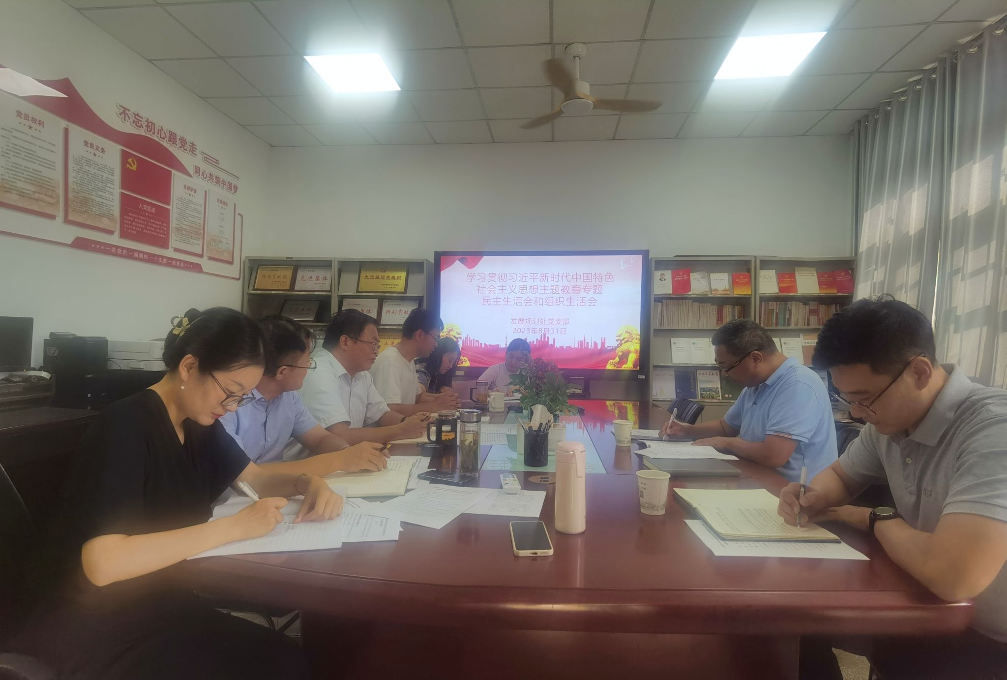 8月31日下午,发展规划处党支部召开学习贯彻习近平新时代中国特色社会主义思想主题教育专题组织生活会。机关党委委员、财务处处长严迎春到会指导,会议由支部书记方明主持,全体党员参加会议。