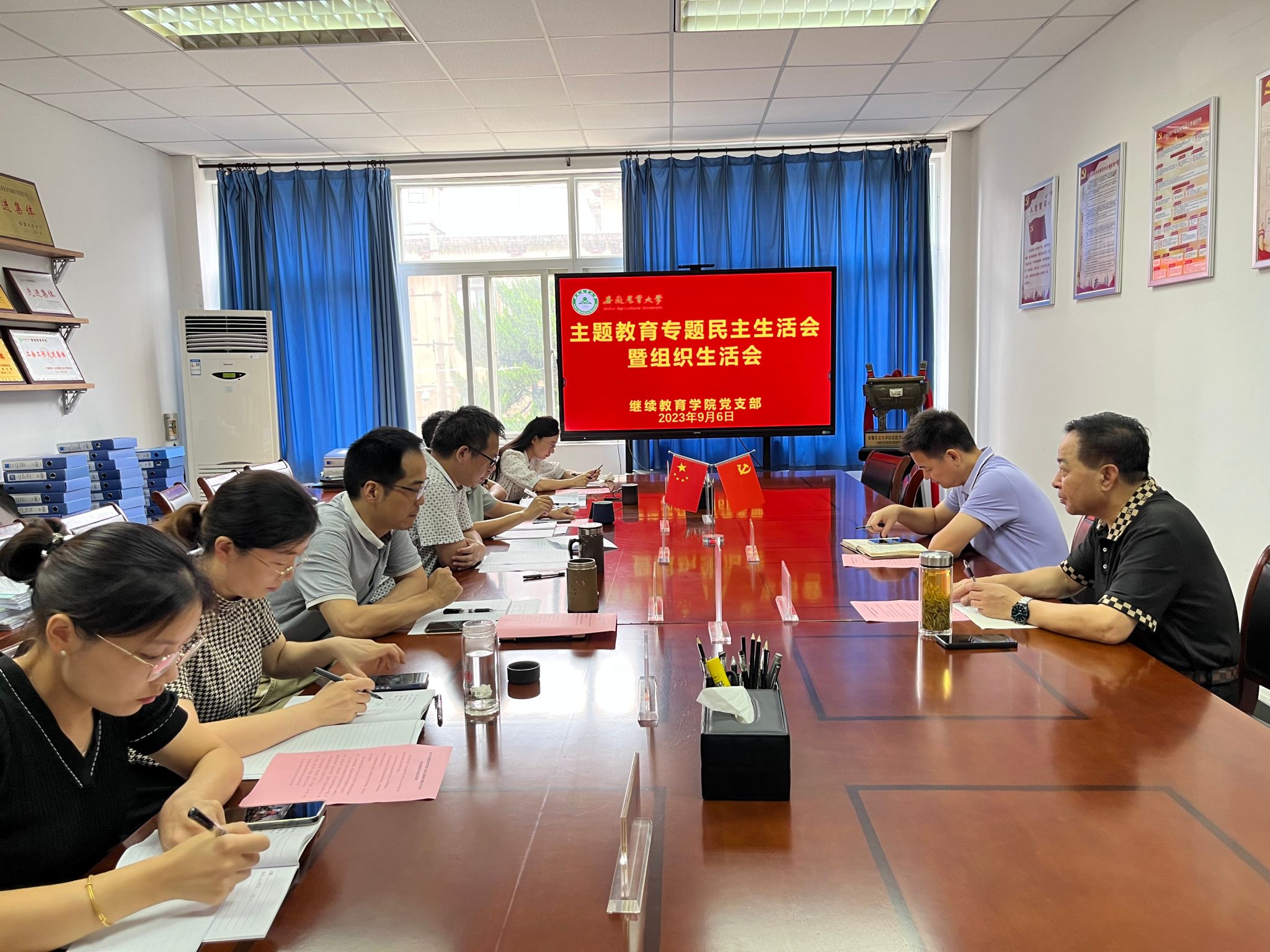 9月6日上午,继续教育学院党支部召开学习贯彻习近平新时代中国特色社会主义思想主题教育专题组织生活会,机关纪委委员王成到会指导并点评,支部全体党员参加会议,会议由党支部书记胡启涛主持。